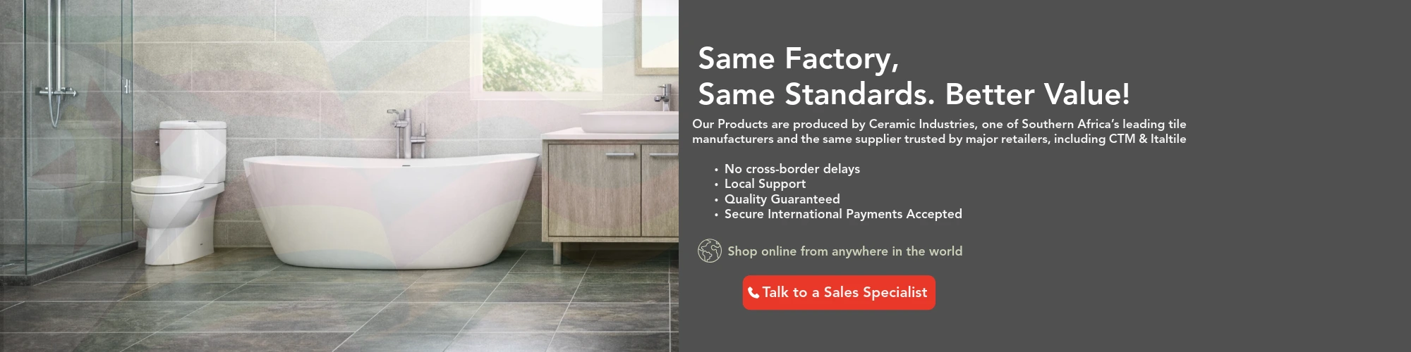 You shop online from anywhere in the world via our website or contact our websales team on WhatsApp (+263 77 132 6413), pay securely via any of our secure payment methods (In partnership with Stanbic), and your family or contractor collects the order in Harare or Bulawayo Stores.